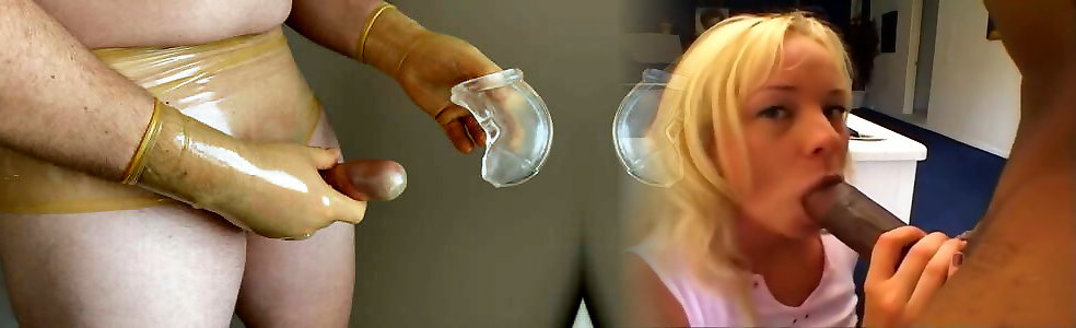 Latex cockplay chastity with rubber mittens