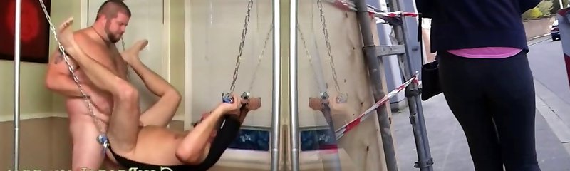 Suspended twink breeds athletic dude